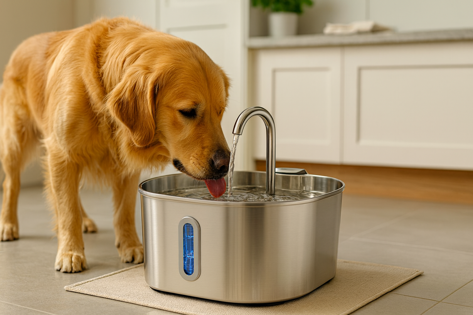 Gentle flow and a near-silent pump dogs (and you) can live with.